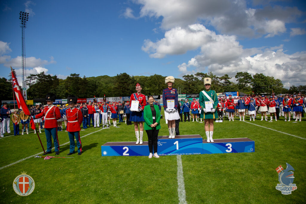 Top 3 Tambourmajor Bymarch – 1. Ea Andersen, Odder Garden, 2. Cecilie Laustsen, Aalborg Garden, 3. Simone Nielsen, Slagelse Garden